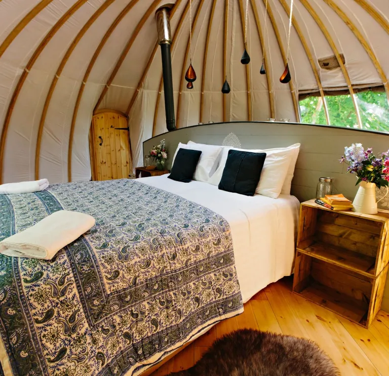 Now for some really different options. At the award-winning Willows campsite on North Wales’ Llŷn Peninsula, you can stay in a fully-insulated Hobbit Tent that resembles a circular wooden tube. Family-run Penhein Glamping in the beautiful Wye Valley offers Persian 'alachighs' – tents with high domed ceilings, comfy beds (proper ones) and wood-burning stoves to keep you cosy.