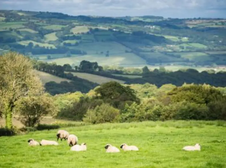 sheep in field and view of Lampeter.