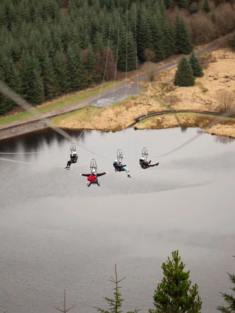 Take to the air at the Zip World Tower attraction in a former coal mine in the South Wales Valleys.