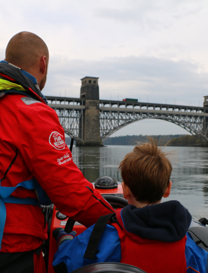 Can there be anything more exciting for an eight year old than cannoning across the waters of the Menai Strait at 30 knots? When our instructor Dion from Plas Menai National Outdoor Centre took us to get kitted out in dry suits and life vests, Joe simply couldn’t keep still. But he had to wait. We started slowly, exploring along the river banks. We saw cormorants plunging into the waters and secret passageways that lead from the river inside Plas Newydd House & Gardens, a stately home on Ynys Môn.