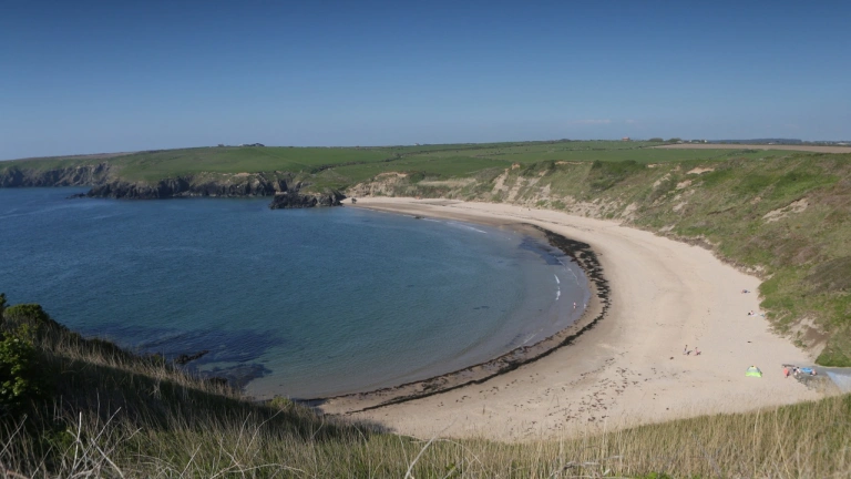 There can be few more picturesque places to swim than the aptly named Whitesands bay, dominated by the craggy Carn Llidi. Stop off for a dip as you walk the Pembrokeshire Coast Path, or spend the day swimming and watching the surfers ride the waves. Parking is limited so why not pick up the Celtic Coaster shuttle bus. Whitesands is a lifeguarded beach.