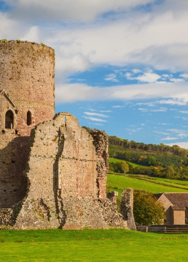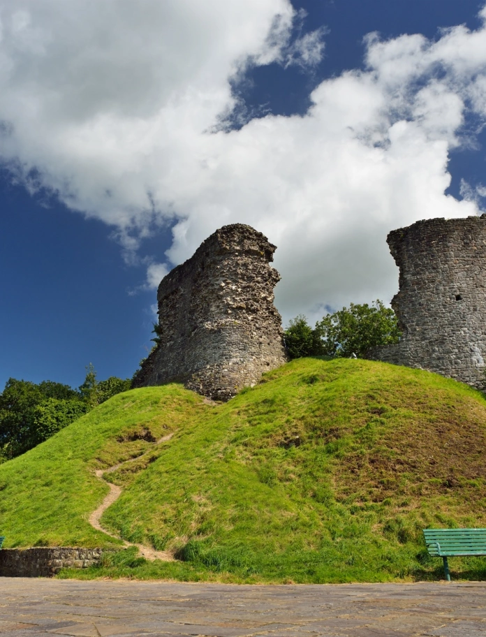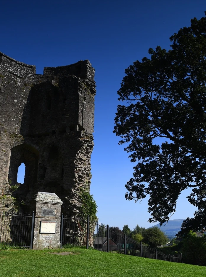 The 13th century Crickhowell Castle, or Alisby Castle is a motte-and-bailey castle that was largely destroyed by Owain Glyndŵr's forces. These ruins feature the motte's outline, sections of the curtain wall, and a partially ruined gatehouse. The partially ruined gatehouse, with elements like a portcullis and a drawbridge, illustrates its role as the main entry and defensive point. Visitors can climb the motte for views of the town and mountains. Near the ruins, you'll find a playing field perfect for running around or having a picnic, along with a play area for young children. The castle is also close to the local shops in the market town of Crickhowell. Visit The CRiC Centre for tourist information, to browse the gallery, or enjoy a cup of tea or coffee.