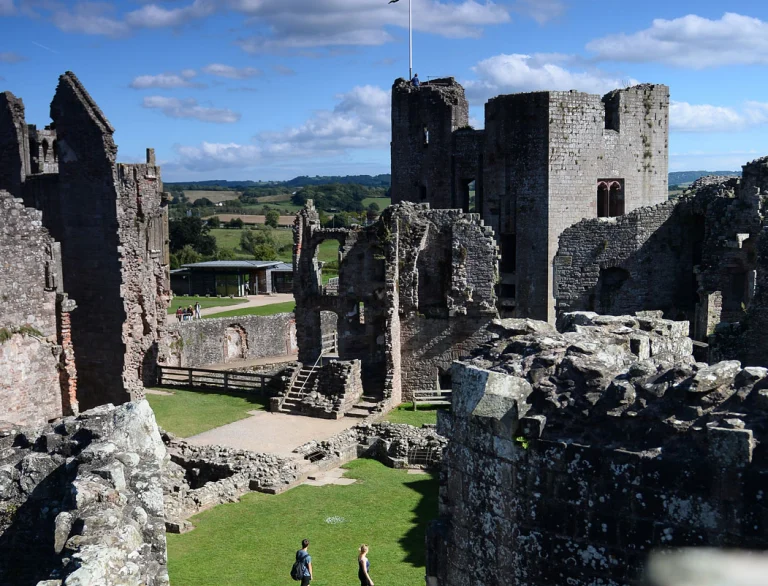 Raglan Castle is notable for its remarkable architecture and historical importance. It was constructed by Sir William ap Thomas, a Welsh knight, and later expanded by his son, Sir William Herbert. The stunning views of the surrounding countryside can be seen from various vantage points within the castle. The ground level is dog-friendly, which allows you to enjoy a picnic with your four-legged friend on short leads.