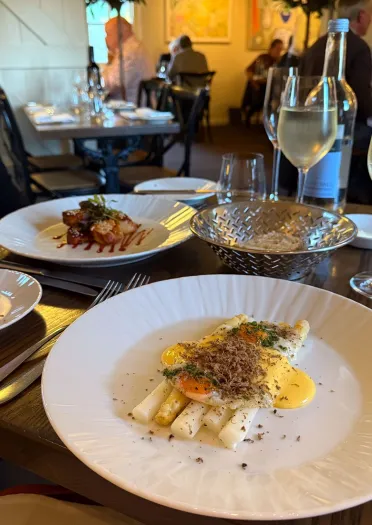 World-renowned for books and famous for the Hay Festival, Y Gelli Gandryll is home to one of only two restaurants in Cymru to currently hold a Michelin Green Star, in recognition of its sustainability efforts. Based within the old meeting rooms of St. John’s Chapel, Chapters is run by Chef Patron Mark Mchugo and Charmaine Blatchford. Locally sourced seasonal offerings include longhorn thick rib of beef with dauphinois, smoked brisket and peppercorn sauce; and Hodmedod’s spelt risotto with Marches mushroom and Shropshire truffle.