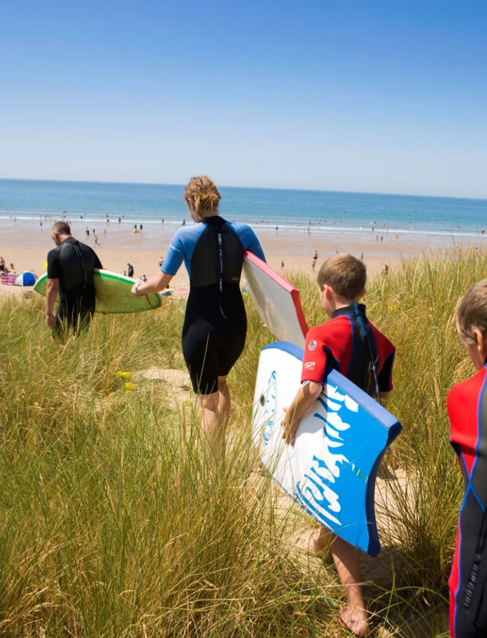 A favourite with surfers, west-facing Llangennith Bay Beach adjoins Rhossili. The long beach is perfect for watersports, walks and running about. It's also one of the best places to learn to surf in Wales.
