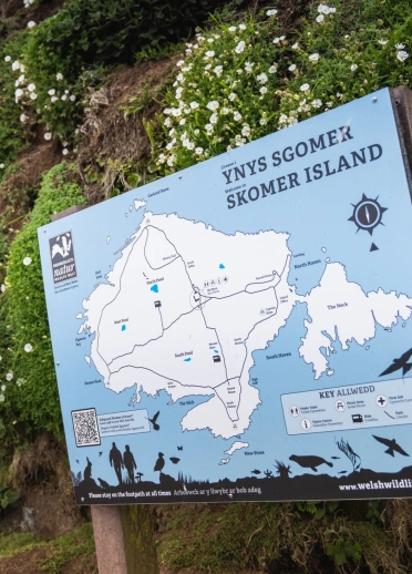 An info board showing a map of Skomer Island.