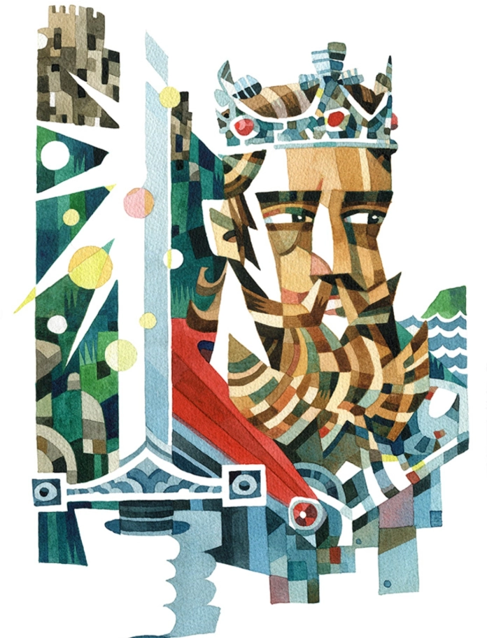 ‘Brân the Blessed’ was the giant king of Britain, ruling the island from his court in Harlech. He married off his sister Branwen to the king of Ireland, but discovered that she wasn’t being treated well, and set off to rescue her. Being a giant, Bendigeidfran waded across the Irish Sea, then lay across the River Shannon so his army could walk over his back. The giant king was mortally wounded in the skirmish that followed, and instructed his men to cut off his head and bury it in London – facing France, so that Britain would never be invaded by sea.