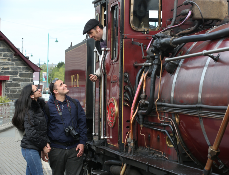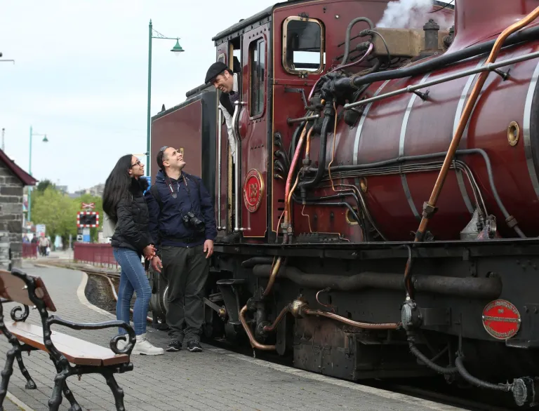 Caernarfon is the Welsh Highland Railway's northern terminus. Powerful Garratt locomotives haul the trains as they snake their way through narrow mountain passes, skirting the base of Yr Wyddfa (Snowdon), then heading towards the coast terminating right opposite mighty Castell Caernarfon (Caernarfon Castle).
