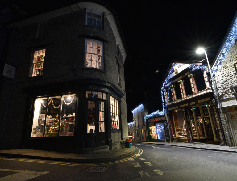 The pretty hilltop town of Llandeilo in Carmarthenshire has become a popular day out for independent shoppers, who spend a leisurely day trawling the town’s many boutiques, jewellers, galleries and antiques shops. In summer, it’s obligatory to snaffle an ice cream from Heavenly, but since it’s Christmas we may opt for a warming hot chocolate at one of the many cafes and pubs.