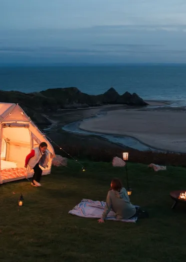 Rhossili Bay is a great spot for star gazing, with views of the sea in all directions. Take care with the cliff edges if visiting Rhossili at night. It is useful to plan your visit when there is no moon, as the visibility of the moon impacts on the ability to see dark skies. Three Cliffs Bay is another good spot for star gazing and you can pitch up at Three Cliffs Caravan Site for the night.