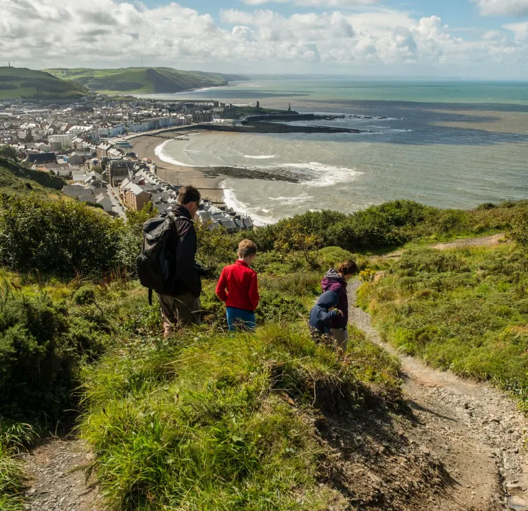 Jump aboard the historic narrow gauge train route of the Vale of Rheidol Railway in Aberystwyth and travel to Devil's Bridge. There, dramatic waterfalls are in abundance, as well as the unusual feature of three separate bridges all built one on top of the other. Listen to the tale of why the bridges are called 'Devil's Bridge', then follow the trail to take in the fabulous views. Stop off at the cafe for a cuppa before boarding the train back to Aberystwyth.