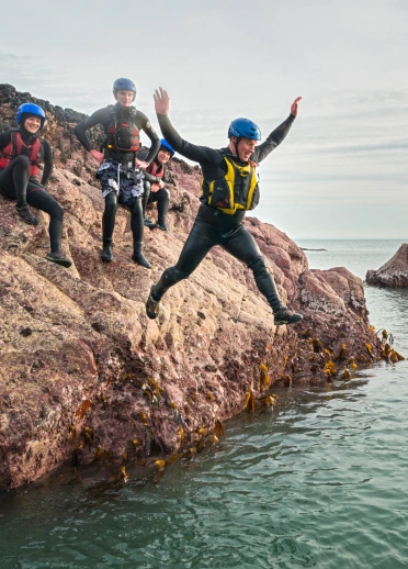 Coasteering near Tyddewi, Pembrokeshire, West Wales