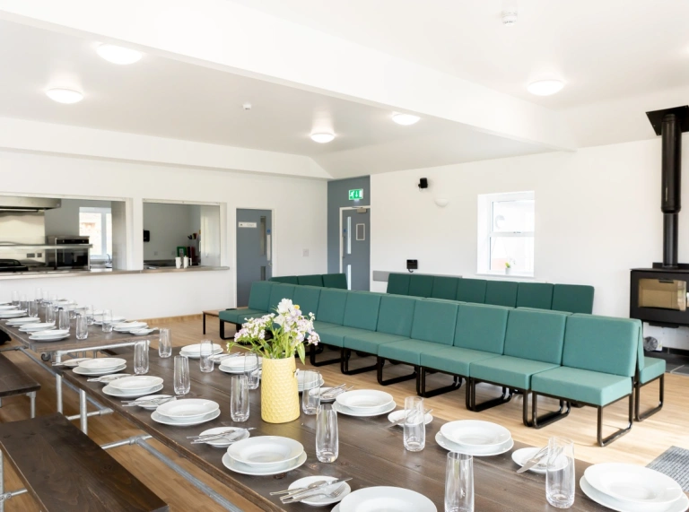 The venue is fully accessible and it sleeps up to 40. There’s a large, dedicated kitchen and an outdoor cooking and meeting space, which includes a pizza oven, a barbecue and a firepit. There is also a cosy lounge to relax and socialise.