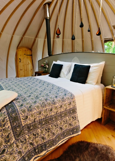 Traditionally tipis have been painted with the dreams of those that have slept inside; yours might recall images of Carmarthenshire, Gower or Eryri. Your tipi may be decorated with elegant Welsh patterned throws and modern amenities."