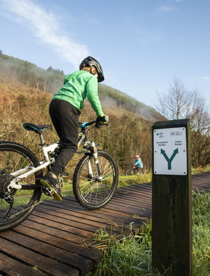 Coed y Brenin Visitor Centre has a selection of play areas to reward children. There is also Y Ffowndri, a fun practice area to build your skills.