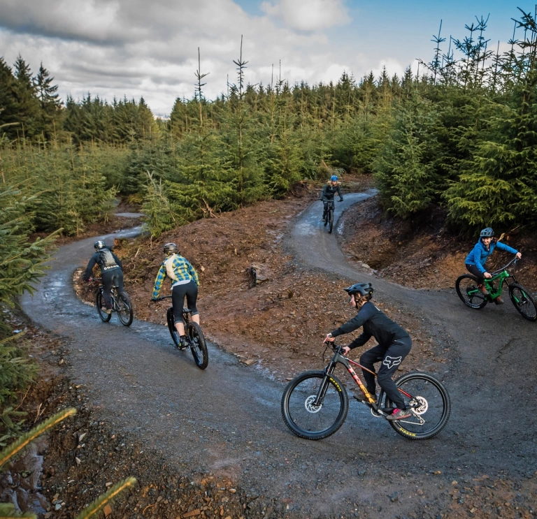 Coed y Brenin, near Dolgellau, was one of the first dedicated mountain bike trail centres in the UK. The Blue Minor Taur route comprises four loops, making it perfect for those wanting to choose a route of multiple lengths (3, 5, 9 or 12km) to fit the ability of all in your group. The wider and rolling trails are ideal for those wanting to experience the thrill and flow of mountain biking, but avoids major climbs and technical sections. The first three loops are suitable for adaptive mountain bikes.