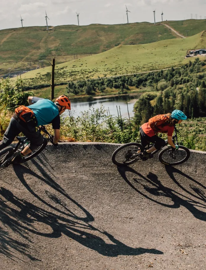 There’s also the easier blue-rated Pwca trail to warm up on, and a couple of more downhill-oriented black trails for riders looking to progress onto more advanced challenges.
