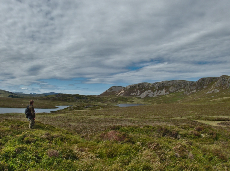 The two Gamallt Lakes (24 and 5 acres) are situated in the western part of the Migneint Mountains, and are a fairly easy 25-minute walk over level moorland from the car park. They are considered one of the finest wild brown fisheries in Wales, with free rising wild trout over 1lb in weight regularly caught using floating lines and traditional wet flies.