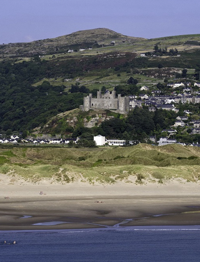 Nestled under the rugged peaks of Eryri National Park, and overlooking the dramatic curve of Cardigan Bay, Harlech is a fabulous destination rich in history, natural beauty, and outdoor adventure. There's loads to do for all the family, from the large, sandy beach backed by Morfa Harlech Nature Reserve and Royal St David's Golf Club, to exploring Castell Harlech (Harlech Castle)'s ancient walls or Llanfair Slate Caverns.