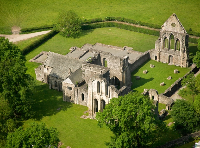 Now mostly in ruins, Valle Crucis Abbey was once the second richest abbey in Wales, after Tintern. Founded by Cistercian monks in 1201, the abbey was lived in until the Dissolution of the monastery in 1537. Check out the pond - it's the only remaining monastic fishpond in Wales. Opposite is Velvet Hill, whose Welsh name, Coed Hyrddyn, means ‘wood of the long man’ which may relate to the tall skeleton unearthed beneath the nearby 9th Century Eliseg’s Pillar.