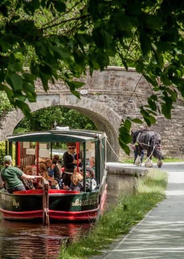 The Llangollen Canal meanders towards the English border through peaceful countryside and over impressive aqueducts. Opened in 1805 to carry slate from nearby quarries to the growing cities of England, with the coming of the railways the canal companies soon faced bankruptcy. The solution was tourism and the Llangollen Wharf Pleasure Boat Company was founded in 1884. Visitors can still enjoy one of the most laid back forms of transport in the form of a Horse-Drawn Boat trip over Thomas Telford's famous Pontcysyllte Aqueduct, one of Wales' UNESCO World Heritage Sites.