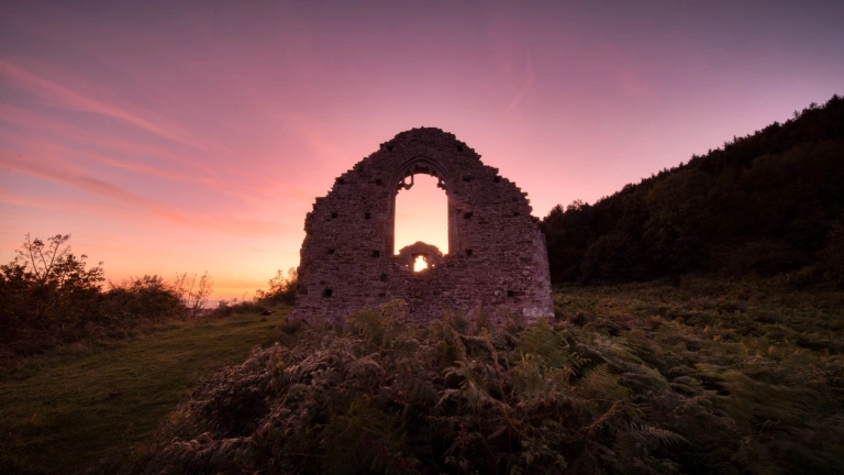 The Monastic Trail is 2.5 miles (4km) and takes you around the iron age hillfort, past the still waters of the fishpond and the remains of Cryck Mill and then up to the ruins of medieval Hen Eglwys church. The views reach as far as Somerset and Devon on a clear day. The path down through woodland is quite steep, so take care.