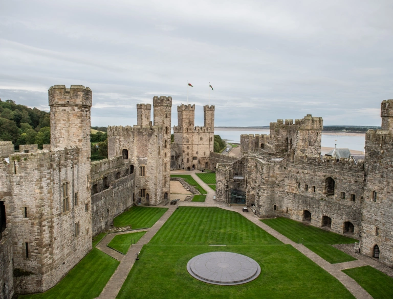 Once inside, you can’t fail to be struck by the scale of the structure, much of which is intact. You’re free to roam around, admiring the view of Caernarfon from the lofty Eagle Tower, and clambering up and down spiral staircases to gaze down at the grassy central area where King Charles III was invested in 1969, when he was the Prince of Wales.
