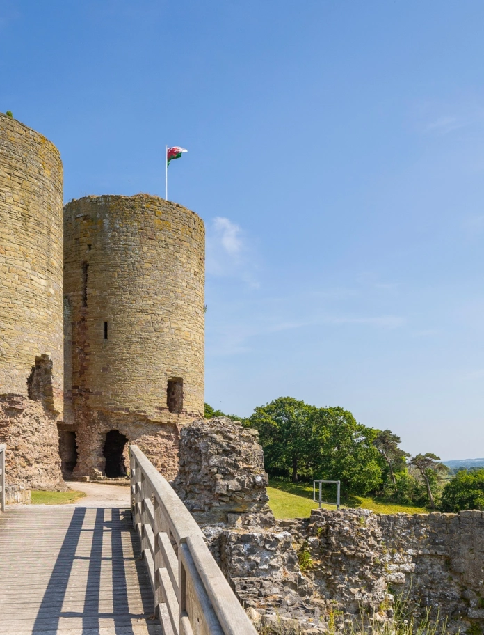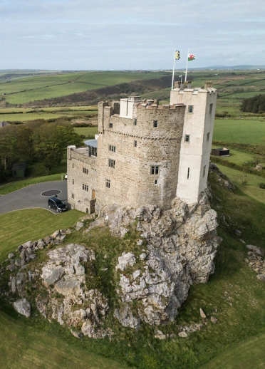 Roch Castle was built in the 1190s, badly damaged during the Civil War in the 1640s, and a complete ruin by the 1800s. In the early 1900s Roch was painstakingly restored by the Viscount St Davids, and now runs as a luxury hotel.