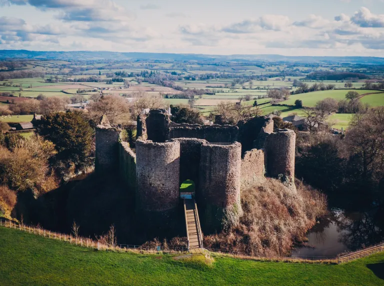 Named after its original white-rendered walls, Y Castell Gwyn (White Castle) is one of three fortresses - Grosmont and Skenfrith are the others - built by Norman lords in the Monnow Valley to guard the borderlands. Although it was already derelict by the 1600s, White Castle is easily the best preserved of the trio – with the bonus of a rural Monmouthshire setting.