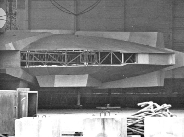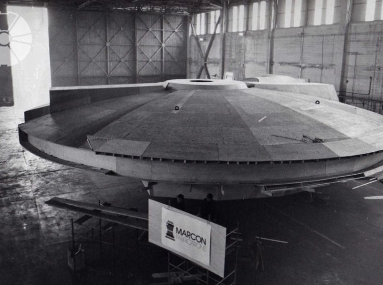 The construction project, which began in the spring of 1979, was supposed to be shrouded in secrecy, even boasting its own code name: Magic Roundabout. However, in the small, close-knit community of Pembroke Dock, it didn’t take long for word to get out, and soon the whole town was abuzz with rumours that a ‘UFO’ was being built in the old RAF hangar.
