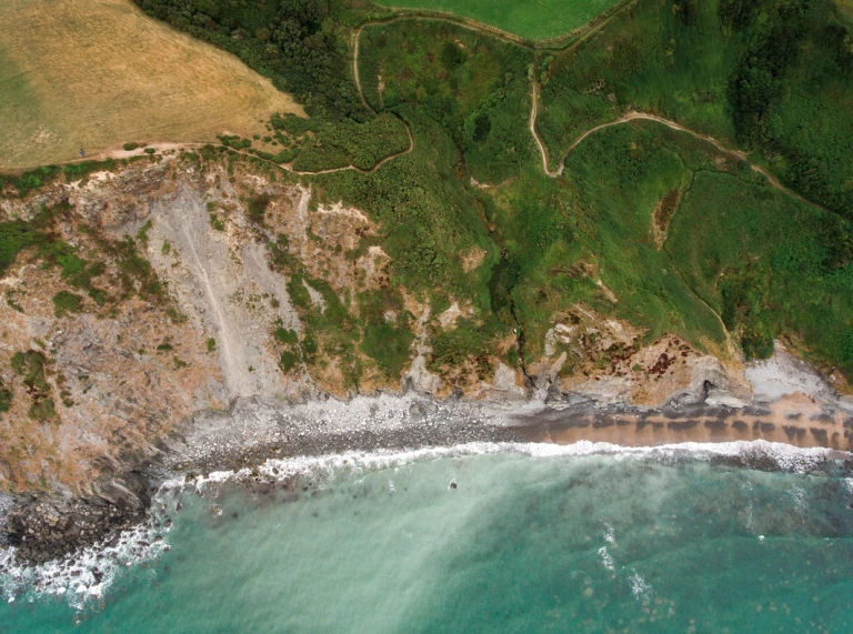 We now head south west to the coast. Between Cei Newydd (Newquay) and Llangrannog, we steer down the narrow roads towards Cwmtydu. There is little to be seen here today, apart from a cafe and a shop, a couple of holiday homes and an old lime kiln near the beach.