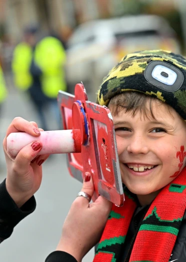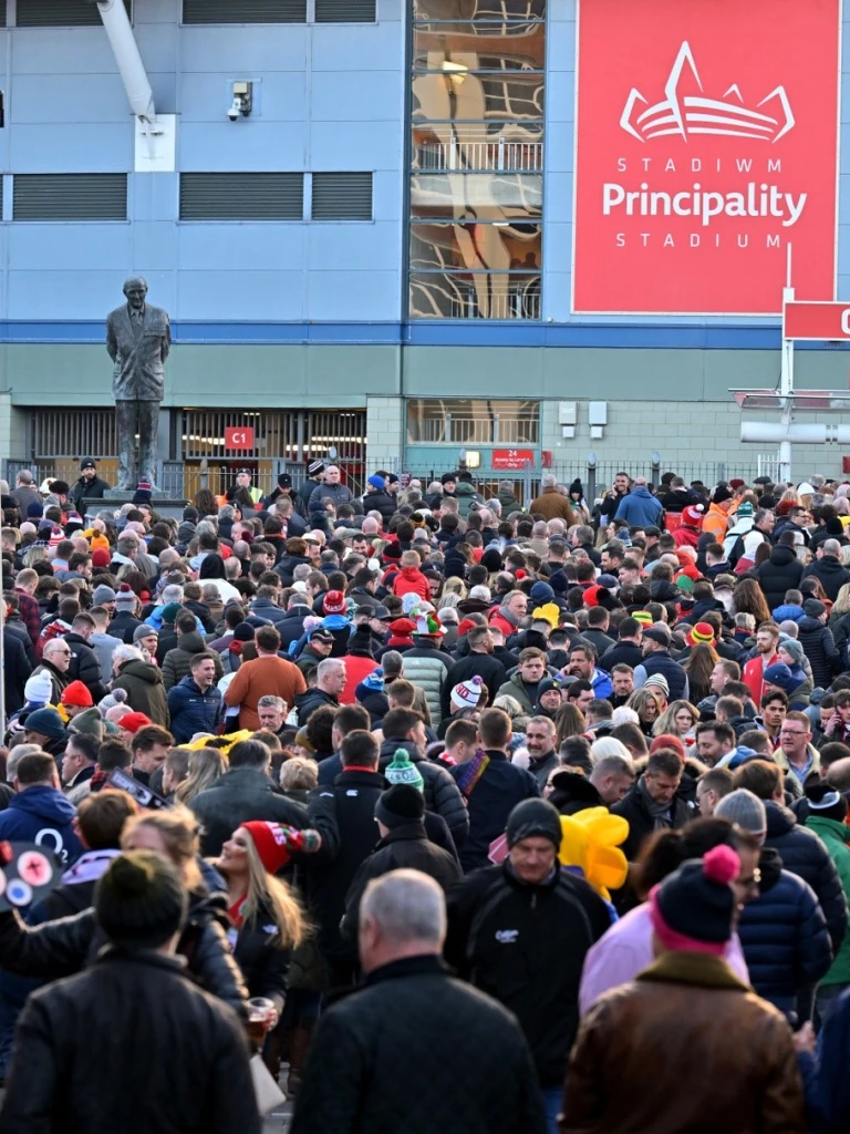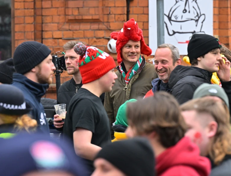 Before and after the game, the streets are filled with torrents of people enjoying a carnival atmosphere of red jerseys, face paint, regular outbreaks of singing, and the inevitable sprinkling of daffodil hats and inflatable sheep. A lot of beer is drunk.