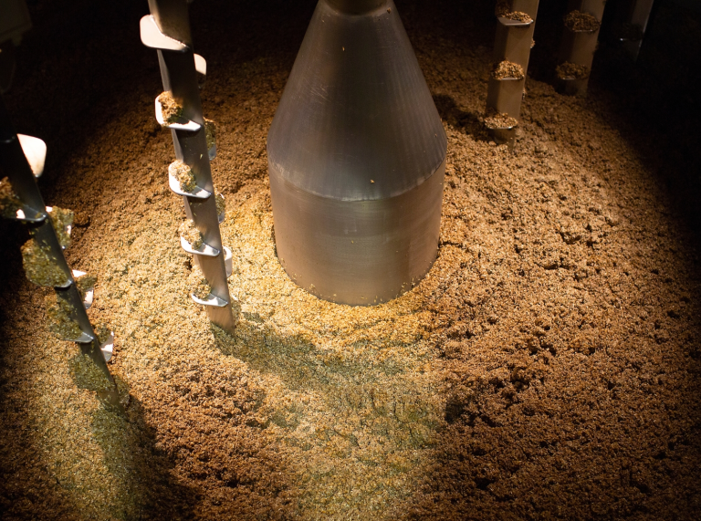 We take malted barley and pass it into our mash tun with hot water. The water comes from our own borehole underneath the distillery. It's drawn from deep in the Bannau Brycheiniog (Brecon Beacons) National Park so it's a steady, clean supply of lovely soft water. Over the next eight or nine hours we extract the sugars from the malted barley. When we have that sugary liquid, called the 'wort', we pass it into our fermentation tanks, add yeast and allow that to ferment. Once that's fermented we fill the 'wash' into our stills and distil it for anything from six to twelve hours. We have two unique Faraday stills which give us a really pure, high-strength light spirit with lots of fruit and flavour. It gives us a great spirit to start off with, and when it goes into a cask it can only get better from there.