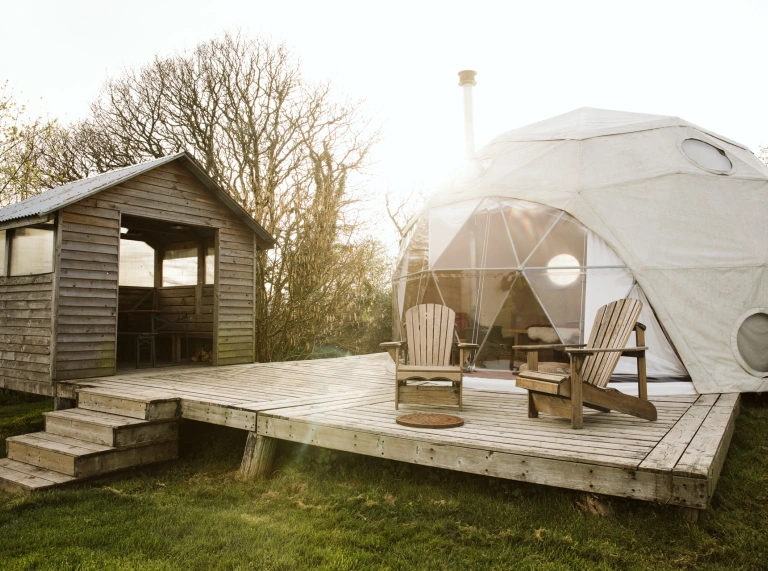Fforest offers a range of bespoke accommodation - from geodesic domes and Japanese-inspired Onsen Domes, to cosy Crog Lofts, family-friendly Hill Shacs and the luxurious Ty Fforest Farm House. Each space is thoughtfully designed to blend rustic charm with modern comforts, including gorgeous Welsh blankets, and is surrounded by 500 acres of natural, wild beauty.
