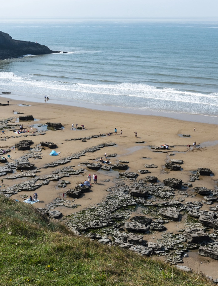 How to get there: Parking is at Dunraven Bay (Southerndown Beach). From there it’s a half-mile walk along the coast with a steep descent to the beach.