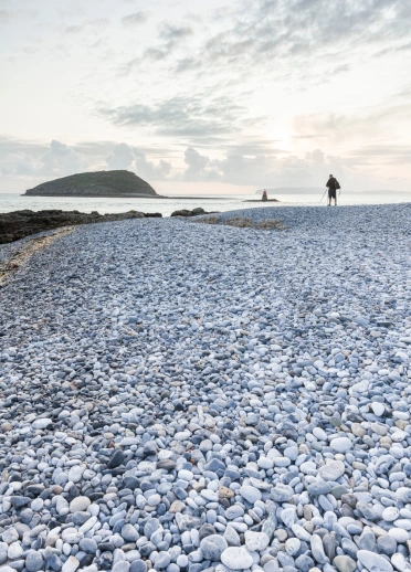 Wild and rugged Penmon Point Beach is in the far southwest of Anglesey. Across the pebbled beach, the striped 18th-century Trwyn Du lighthouse stands proud with views of Puffin Island beyond. In season, there are often seal sightings in the waters here and the rock pools are busy with crabs and anemones. After a windswept walk, there’s a cute and quirky café above the beach where you can refuel.