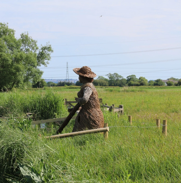 Welcoming visitors to Magor Marsh is Anne Williams, a willow-weaved sculpture of a 'Brinker'. A 'Brinker' is local lingo for someone who would have managed bankside vegetation.