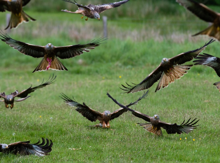 At 2pm every winter afternoon, and 3pm in the summer, something extraordinary happens in a field in the middle of Wales. It begins prosaically enough, a tractor puffing its way up a gentle, grassy slope. But its cargo is unusual: forty kilograms of beef. A farmer takes a shovel to the meat and starts tossing it onto the grass. Then the spectacle begins.